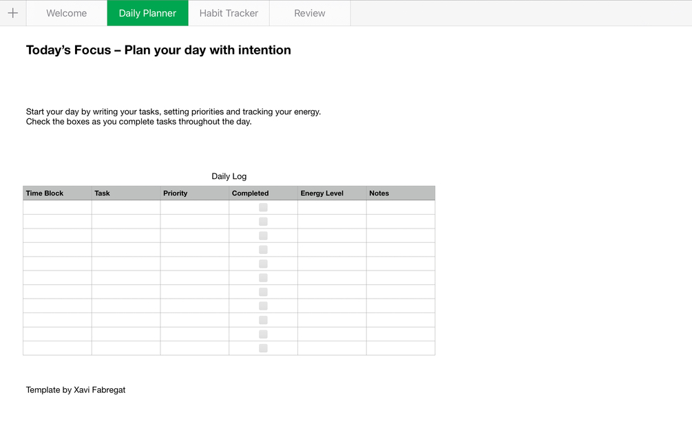 FocusFlow – Daily Planner & Habit Tracker for Apple Numbers